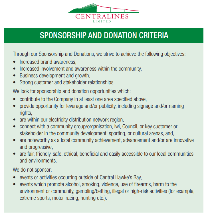 Centralines is proud to support a wide range of community groups, facilities and key stakeholders through sponsorships and donations, helping to make a positive impact where we are based and work.
